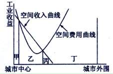 下图为某工业收益随空间变化曲线图,据此完成28-30题。