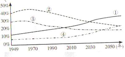31.读“世界人口年龄系数变化示意图”,图中曲线所代表的内容正确的是 ( )