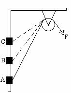 4、如图,固定光滑竖直杆上套着一个滑块,用轻绳系着滑块绕过光滑的定滑轮,以大小恒定的拉力F拉绳,使滑块从A点起由静止开始上升。若从A点上升至B点和从B点上升至C点的过程中拉力F做的功分别为W1、W2,滑块经B、C两点时的动能分别为EKB、EKC,图中AB=BC,则一定有( )