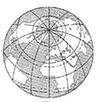 右图所示为以38ºN、0º为极点的陆地相对集中的“陆半球”(另一半球为“水半球”)。读图回答3-4题。