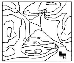 C.若在图示区域内兴建大坝,则丁村存在被淹没的可能