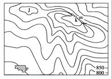 等高线地形图是用等高线表示地形高低起伏的地图。据此回答6-7题: