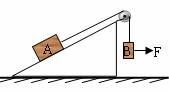 顶端装有滑轮的粗糙斜面固定在地面上,A、B两物体通过细绳如图连接,并处于静止状态(不计绳的质量和绳与滑轮间的摩擦)。现用水平力F作用于悬挂的物体B上,使其缓慢拉动一小角度,发现A物体仍然静止。则此过程中正确的选项是
