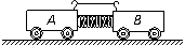 如图所示,在水平光滑桌面上有两辆静止的小车A和B,质量之比mA∶mB = 3∶1。将两车用细线拴在一起,中间有一个被压缩的弹簧。烧