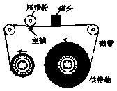 解析:磁带放音机的播放原理为磁带上的磁信号感应磁头上的线圈转化成电信号.为了保持放音速度平稳,压带轮和主轴要确保磁带传送的线速度大小恒定,故A选项正确.