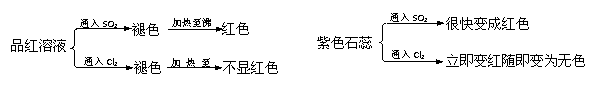 SO2和Cl2虽都有漂白性,但漂白原理和现象有不同特点。氯气的漂白原理是由于溶于水生成次氯酸的具有强氧化性,将有色物质氧化成无色物质,褪色后不能恢复原来的颜色。而SO2是由于它溶于水生成的亚硫酸与有色物质直接结合,形成不稳定的无色化合物,褪色后在一定的条件下又能恢复原来的颜色。如: