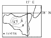 右图中虚线是某岛火山喷发后火山灰厚度等值线,a<b<c,读图完成4-5题![]()