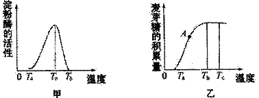 C.图乙中Tb到Tc的曲线表明随温度的升高,麦芽糖不再上升,酶的活性已达到最大