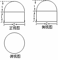 4. 已知一个空间几何体的三视图如图所示,其中正视图、侧视图都是由半圆和矩形组成,根据图中标出的尺寸 (单位:cm),可得这个几何体的体积是 ( )