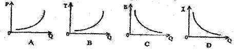 5. 汽车需求量(Q)随着汽车价格(P)、汽车购置税(T)、汽油价格(E)、居民收入(I)的变动而变动。下列曲线图中正确反映其变动关系的是 ( )
