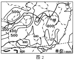 图2为我国部分地区多年平均地面蒸发量图。读图完成3-4题。