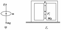 [解析] 环在竖直方向上受力情况如图甲所示,受一个重力,及箱子的杆给它的竖直向上的摩擦力Ff,根据牛顿第三定律,环应给杆一个竖直向下的摩擦力Ff′,故箱子竖直方向上受力如图乙所示,受重力Mg,地面对它的支持力FN,及环给它的摩擦力Ff′,由于箱子处于平衡状态,可得FN=Ff′+Mg=Ff+Mg.