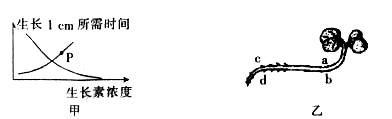 8.将植物横放,测得根和茎生长素浓度与其生长状况的关系如甲图所示。则曲线上P点最可能对应于乙图中的哪个位置