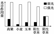 4.(2010·湖南四校联考)在适宜的温度、水分和CO2条件下,分别测定强光和弱光时不同植物的净光合作用量,如下图所示。请据此判断,下列叙述不正确的是( )