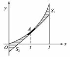 12.如图,过抛物线C:y=3x2(x≥0)上一点A(t,3t2)的切线为l(0<t<1),S1是抛物线C与切线l及直线x=1所围成的面积;S2是抛物线C与切线l及直线x=0所围成的图形面积.