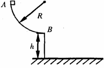 17.(14分)如图所示,半径R=2m的四分之一粗糙圆弧轨道AB置于竖直平面内,轨道的B端切线水平,且距水平地面高度为h=1.25m,现将一质量m=0.2kg的小滑块从A点由静止释放,滑块沿圆弧轨道运动至B点以v=5m/s的速度水平飞出(g取10m/s2).不计空气阻力。求: