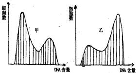 7.甲图表示某种哺乳动物细胞在正常培养时,所测得的细胞中DNA含量在整个细胞群体中的分布情况。当用某种化合物处理该细胞并培养几小时,DNA含量的分布如图乙所示,该化合物所起的作用是