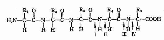 蛋白质分子能被肽酶降解,至于哪一肽链被断裂则决定与肽酶的类型。肽酶P能断裂带有侧链R4的氨基酸和相邻氨基酸的氨基基团之间的肽链。下列说法错误的是 ( )