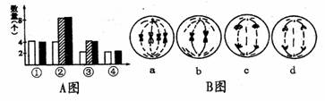33.下面A图表示动物精巢内所看到的体细胞分裂及其精子形成过程中染色体、染色单体、DNA数量的变化图,B图表示在上述两种细胞分裂过程的各个时期染色体变化模式图。B图所示与A图所示相对应的是 ( )