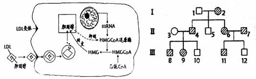 (3)右上图为某个高胆固醇血症的家族系谱图(基因符号A和a)。请分析: