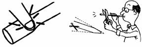 22.先将一根吸管的一端压扁后,按图4.3-19示方法剪去两角,再将这端放入口中,吹出声音来.用剪刀将吸管的另一端逐渐剪短,仔细分辨吹出的音调有什么变化.想一想,哪种乐器的演奏原理与它相似?