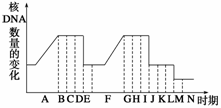 解析 A→E是有丝分裂,F→E是有丝分裂,F→M是减数分裂DNA数目加倍发生在有丝分裂间期(A)和减数第一次分裂间期(F);D为有丝分裂后期;L为减数第二次分裂后期,姐妹染色单体分开;在间期会发生DNA复制和蛋白质的合成,翻译发生在细胞质的核糖体上。