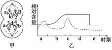 (3)图甲所示细胞中含有________个染色体组。图中所示分裂时期处于图乙中的__________阶段(填图中字母)。