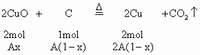 时,C过量,按②式中的CuO的量计算,生成铜为Ax,剩余C的物质的量为:
