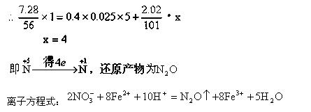 解析:该题中Fe已全部被转化为Fe2+,因此Fe2+与KNO3、KMnO4的氧化还原反应中,还原剂为Fe2+,氧化剂为KNO3、KMnO4,根据电子得失守恒列方程。