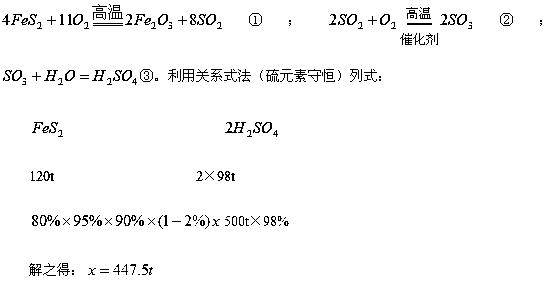 率为2%,求生产500t98%的硫酸需矿石的质量和标况下空气的体积。(假设空气中氧气的体积分数为20%)。
