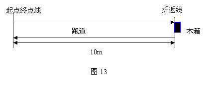 13.(10分)“10米折返跑”的成绩反应了人体的灵敏素质,测定时,在平直跑道上,受试者以站立式起跑,姿势站立在起点终点线前,当听到“跑”的口令后,全力跑向正前方10米处的折返线,测试员同时开始计时,受试者到达折返线处时,用手触摸折返线处的物体(如木箱),再转身跑回起点终点线,当胸部到达起点终点线的垂直面时,测试员停表,所用时间即为“10米折返跑”的成绩。如图所示,设受试者起跑的加速度为4m/s2,运动过程的最大速度为4m/s,快到折返线处时需减速到零,减速的加速度为8m/s2,返回时达到最大速度后不需减速,保持最大速度冲线,求该受试者“10米折返跑”的成绩为多少秒?