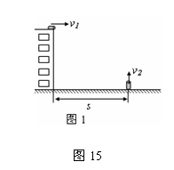 15.(12分)国家飞碟射击队进行模拟训练用如图15的装置进行。被训练的运动员在高为H=20m的塔顶,在地面上距塔的水平距离S处有一电子抛靶装置。圆形靶以速度