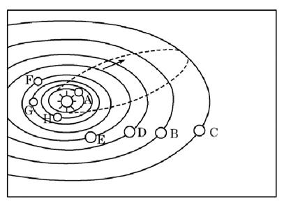 (1)图中字母所代表的行星名称是:A_____________,B_____________,C_______________,D____________。