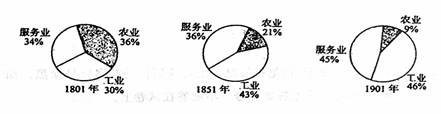下面是19世纪英国各产业就业人数占总就业人数的比例变化示意图。就业比例发生变化的主要原因是