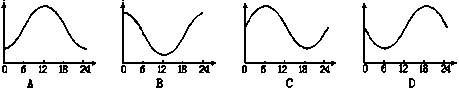 29.某学生在温室(玻璃)里进行植物栽培实验,他对室内空气中的CO2含量进行24小时测定,下图曲线能正确表示其测定结果的是 ( )