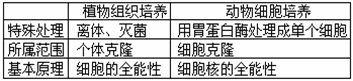 30.下表为植物组织培养和动物细胞培养有关内容的比较,其中错误的有 ( )