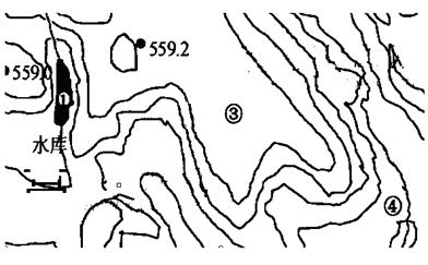 [原创]下图是某地地形图,等值距是10米,①是水库。完成7-8题。