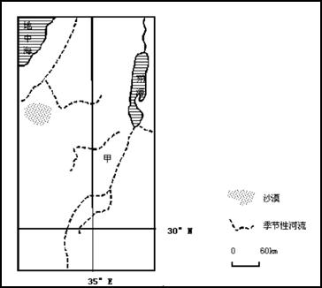 下图示区域内自南向北年降水量由约200mm 增至500mm 左右,沙漠地区年降水量仅50mm 左右。据此完成9-11 题。