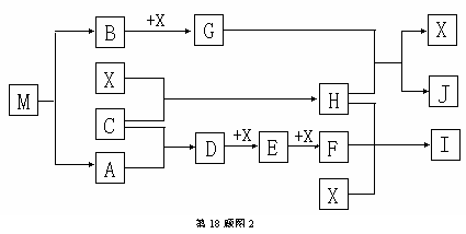 35.4%,M在汽车安全气囊中有重要的作用。常温下G为淡黄色固体。H为一种常见的液体,A、B、C、X为单质,其中A、C、X为气体,A、X均为空气中成分。I、J为常见的工业原料。有关物质间的转化关系如下图所示。