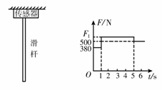 15.如图甲所示为学校操场上一质量不计的竖直滑杆,滑杆上端固定,下端悬空,为了研究学生沿杆的下滑情况,在杆的顶部装有一拉力传感器,可显示杆顶端所受拉力的大小,现有一学生(可视为质点)从上端由静止开始滑下,5s末滑到杆底端时速度恰好为零并静止悬挂在杆的底端.从学生开始下滑时刻计时,传感器显示拉力随时间变化情况如图乙所示,g取10m/s2,求:
