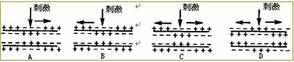 所产生的神经冲动传导方向(横向箭头表示传导方向),其中正确的是:( )