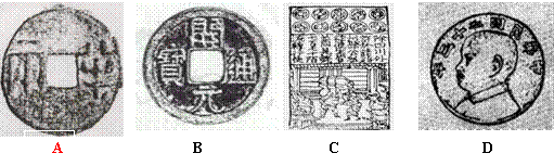 12、钱币蕴涵着丰富的历史信息,以下钱币反映了分裂到统一的时代变迁,并能极大地促进国家统一的是