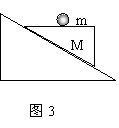 例3、如图3所示,一个劈形物体M放在固定的斜面上,上表面水平,在水平面上放有光滑小球m,劈形物体从静止开始释放,则小球在碰到斜面前的运动轨迹是: