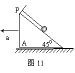 例9、如图11所示,细线的一端固定于倾角为450的光滑楔形滑块A的顶端P处,细线的另一端拴一质量为m的小球。当滑块至少以加速度a=