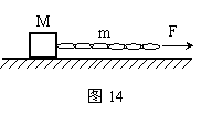 例10、用质量为m、长度为L的绳沿着光滑水平面拉动质量为M的物体,在绳的一端所施加的水平拉力为F, 如图14所示,求: