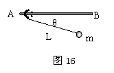 例11、如图16所示,AB为一光滑水平横杆,杆上套一轻环,环上系一长为L质量不计的细绳,绳的另一端拴一质量为m的小球,现将绳拉直,且与AB平行,由静止释放小球,则当细绳与AB成θ角时,小球速度的水平分量和竖直分量的大小各是多少?轻环移动的距离d是多少?