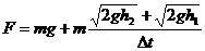 例17、蹦床是运动员在一张绷紧的弹性网上蹦跳、翻滚并做各种空中动作的运动项目。一个质量为60kg的运动员,从离水平网面3.2m高处自由下落,着网后沿竖直方向蹦回到离水平网面5.0m高处。已知运动员与网接触的时间为1.2s。若把在这段时间内网对运动员的作用力当作恒力处理,求此力的大小。(g=10m/s2)