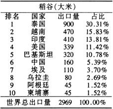(2)世界主要稻米出口国中,中国-东盟自由贸易区成员国有__________个。自由贸易区正式启动后,我国稻米进出口面临东盟国家的竞争,结合我国稻米生产的特点,分析我国应该采取哪些措施应对?(10分)
