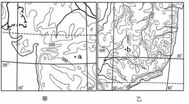 11.有关甲、乙两图中a、b两地的叙述,正确的是 ( )
