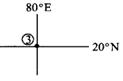 16.图中 ② 、④ 两地直线距离最接近 ( )